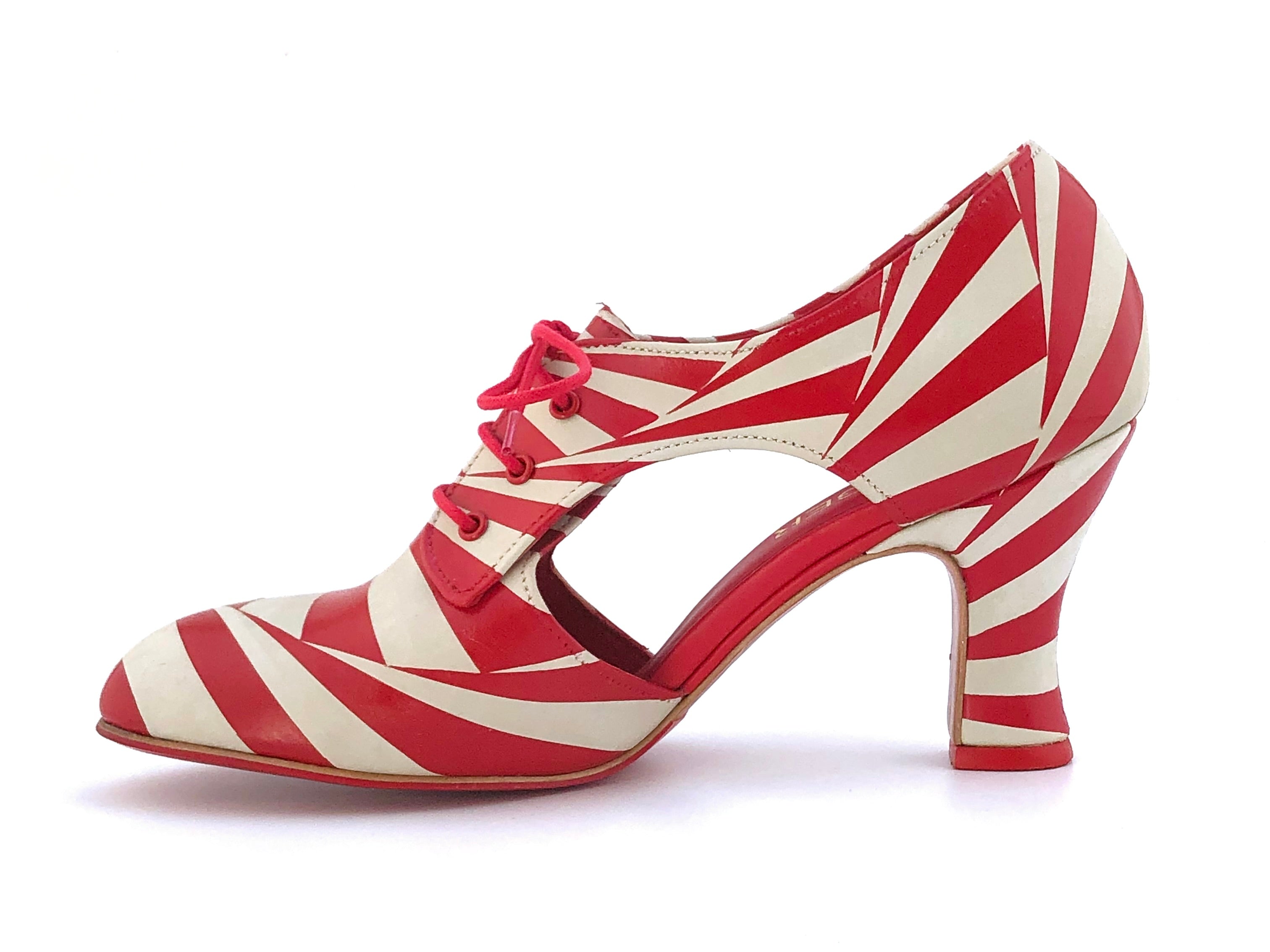 The toe section has been painted and the shoe removed from the last in order to attach the heel and the back portion to the front.