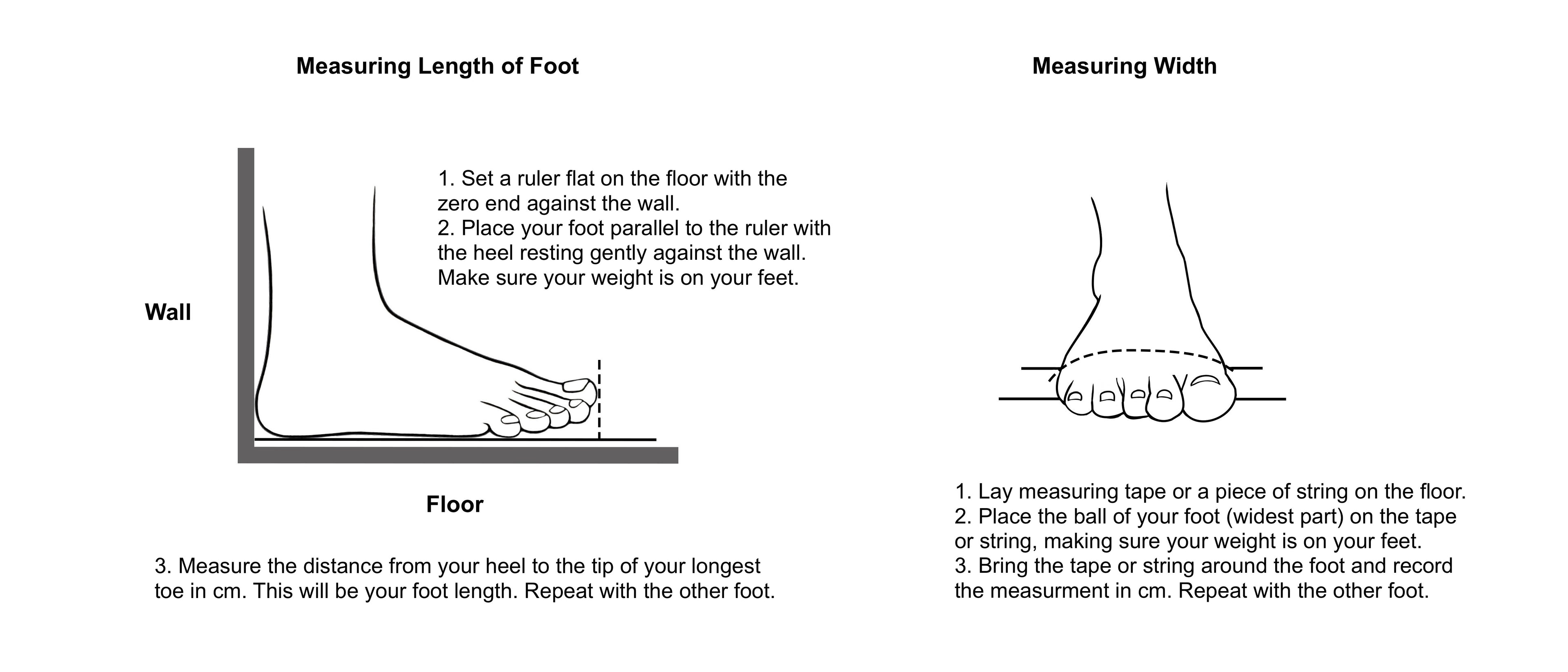 To get the best fit possible a custom made shoe is recommended but in its absence a standard size shoe will work for many. Determining your standard size can be achieved, to some extent, with the aid of a few foot measurements.