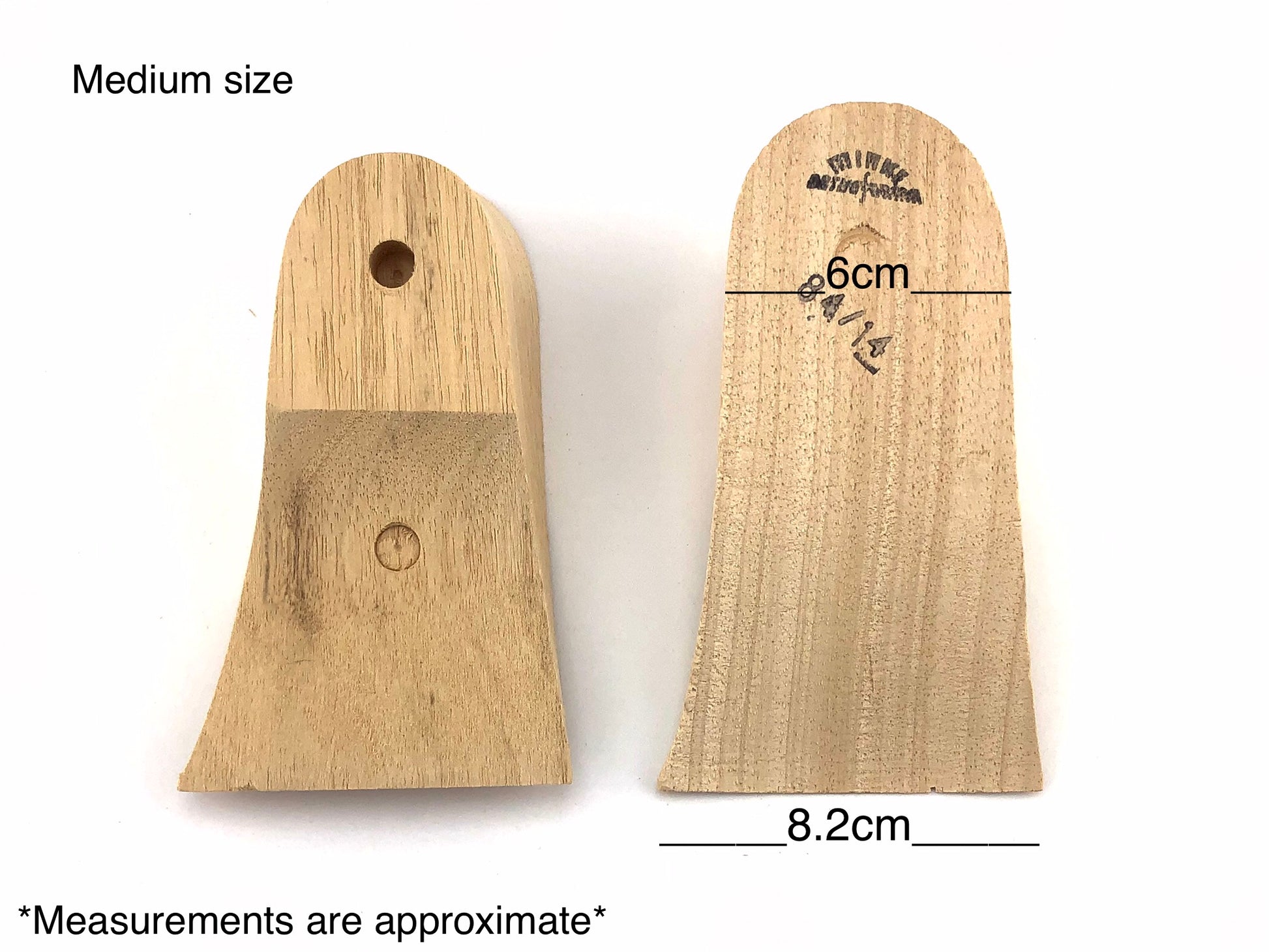 Minke wood wedges for shoemaking with minor imperfections (chips out of wood). Pack includes 6 pairs.